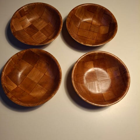 9 stk Tallerkener i Teak, de er Ø28cm.