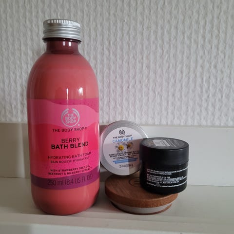 Det indeholder sæbe, badesvamp, body scrub, body butter og shower gel.