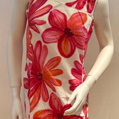 Sommerkjole, Claire.dk, str. M, Hvid med pink og røde blomster, Bomuld, God men brugt, Kjole med stropper og store pink og røde blomster. Kjolen har lynlås i siden og slids bagpå. Længde fra skulder: 99 cm. Bredde målt under ærmegab: 44x2 cm. Køber betaler evt. forsendelse.