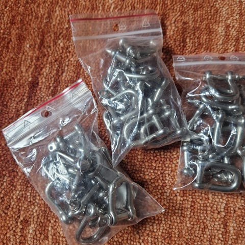 Forskellige,sjækler,karabinhager samt P-led Alt nyt og rustfrit sælges samle...