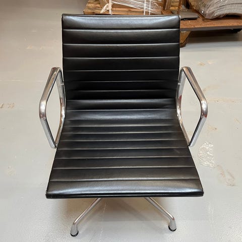 Eames, Ea-108, Stol. Skind i helt fin stand, armlæn pæne, understel med en del brugsspor.