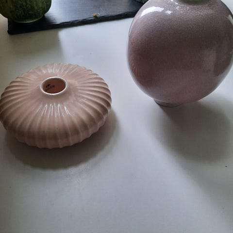 Keramik, Askebægre , Ligner Kahler / kähler, Stribet i grøn/turkis askebærgre.