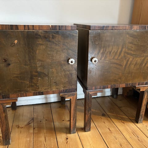Art DECO sengeskabe, Træ med krakkele maling, 100 år gl., 2 art DECO sengeskabe malet med krakkele maling/lak