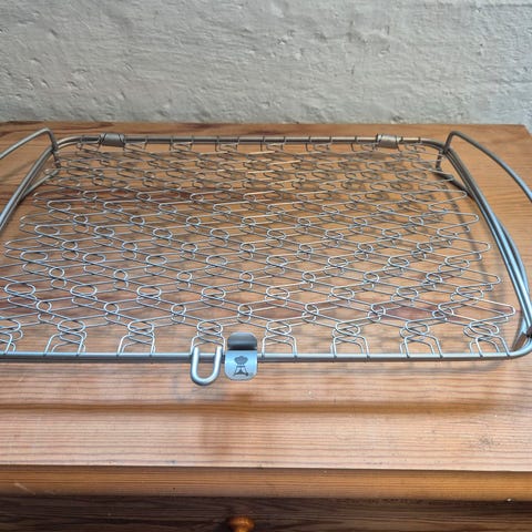 Fiske-grillrist med håndtag (fiskevender) Ny og ubrugt. Sort metal med træhåndtag. Længde 67 cm.