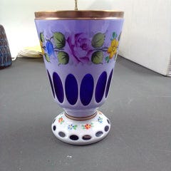 De fremstår i koboltblå glas med guld og blomsterdekorationer.