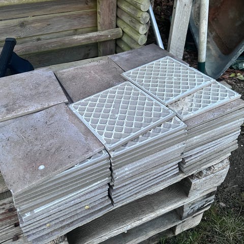 Andet, b: 145 l: 35, 102, Hulkehlklinker fra Hasle klinker i farven mørkerød , 102 stk til 25 kr stk