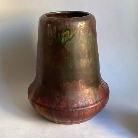 Glasur i brune nuancer. Lustreglasur med metalliske nuancer.