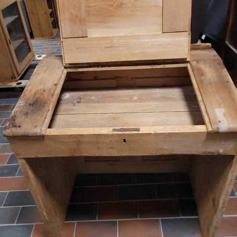 Kæmpestor skrivepult, Træ, Megastor skrivepult med 2 skuffer og stort tum under plade 76x 66 cm og 105-117 høj