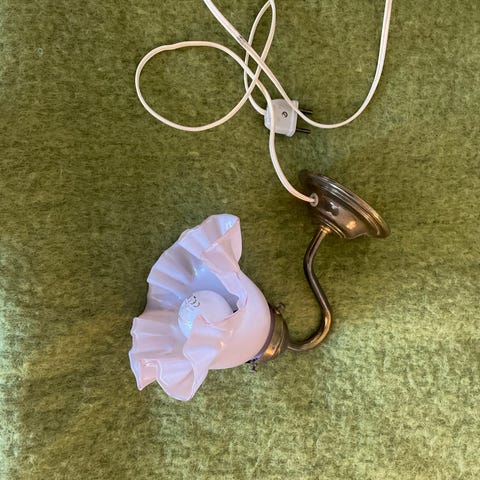 Væglampe, J. Sommer, Skønne vintage væglampe fra J. Sommer i messing og porcelæn med motiv guldmaling. Skønne til sommerhuset, kolonihaven eller terrassen. Den går 18 cm ud fra væg og er 22 cm høj. Pr stk kr 25,- afhentes i København