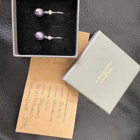 Hvidguld. Supersmukke, men nok ikke lige mig, så kun brugt ganske få gange. Som nye.
