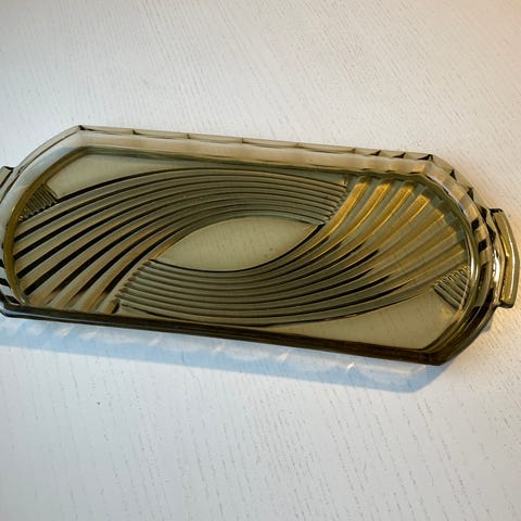 Glas, Fad, Retro lavt glasfad/skål i presset glas. Formentlig fra 50`erne. 28 cm i dia. Røg og dyrefrit.