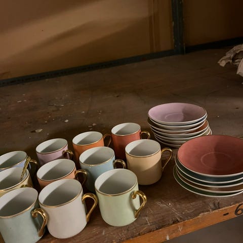 Porcelæn, 4 moccakopper med underkopper, Arabia, “She Fo”. 1920-40. Greta-Lisa Jäderholm-Snellman.