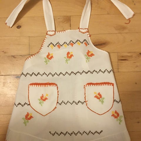 Andre samleobjekter, Vintage pigekjole, Den fineste lille kjole i tynd bomuld med broderede blomster.