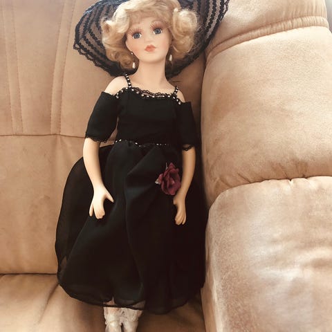 Porcelænsdukke, dukke stor 75 cm høj, stor samler dukke navn elke se billeder den har stået til pynt blødt krop porcelæns dele på kroppen hoved arme ben med originalt tøj man kan købe tøj til den samler dukke køn pige hun er tung den der elsker børn den er narturligt ud må godt leges med dem de her dukker kan sendes med dao + porto eller hentes egtved