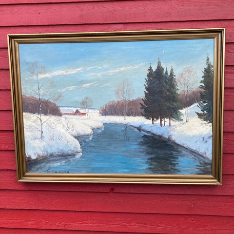 Oliemaleri, Karl Skovgård, motiv: Landskab, stil: Naturalistisk, b: 68 h: 50, Kan evt.sendes...Evt.bud modtages