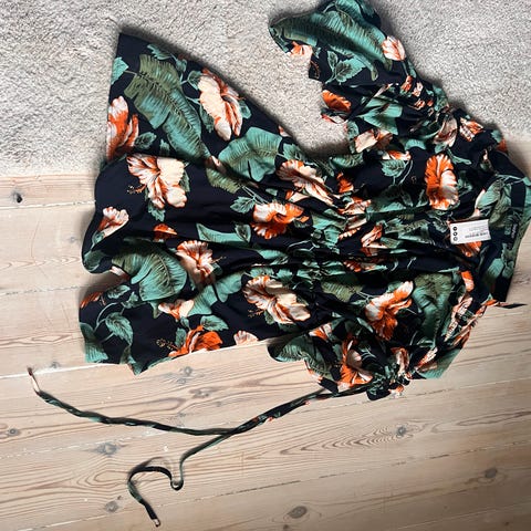 Sommerkjole, Boohoo, str. M, hvid, Hvid kjole med sorte firkanter og blomster på