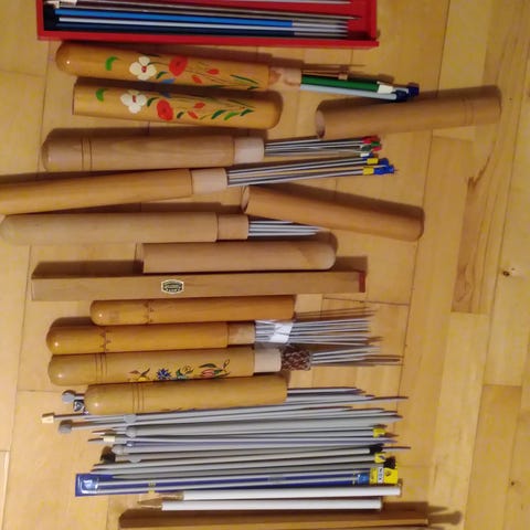 Strikkepinde, pinde + maske holder, pinde til snoninger .