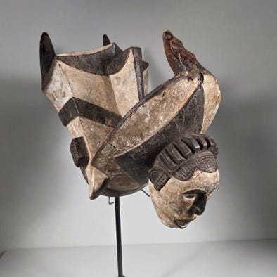 Yaoure hårdttræsmaske med dyreafbildbing i fremragende stand. Mangefacetteret og utrolig farverig genstand. Udsøgt eksemplar.