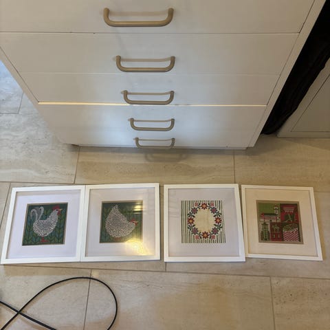 Broderier i ramme, retro hjem. Fra ikke rygerhjem.