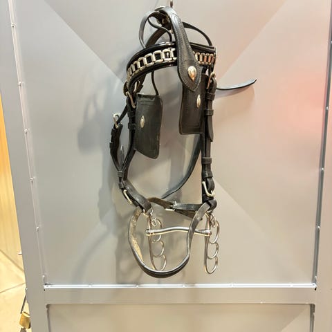 Køresele, 2. Spands køreseler til pony. Flere størrelser. Bringmål midt spænde til midt spænde 119 cm. Eller 109 cm: eller 100 cm eller 90 cm. Eller 80 cm. Nye brun eller sort, med skagler, liner, kobel, hovedtøj. Butikspris 5200 kr.