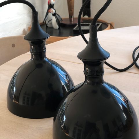 Pendel, FL 75, Super velholdt FL75 pendel i hvid og sart gul. Isat ny ledning. Ca 18 cm høj.