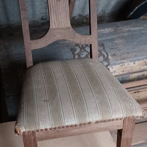Spisebordsstol, Egetræ, Antikke stole ca. 100 år gamle .Trænger til en klat lim.