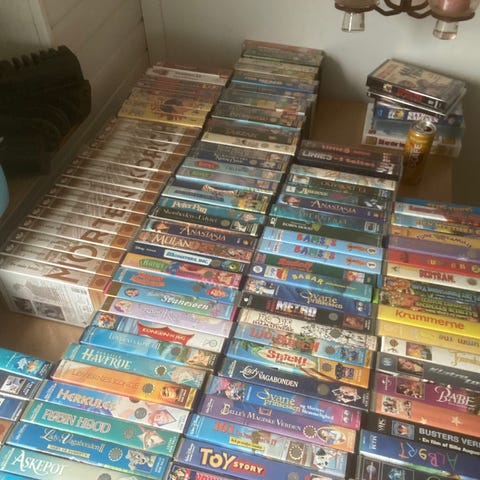 Andre samleobjekter, VHS-kassettebånd, 103 stk. bånd, hvor der er optaget masser af film og musik på. De kan jo alle slettes eller overspilles.