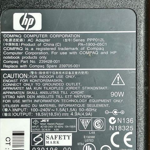 Strømforsyning, HP, Perfekt, ORIGINAL HP Strømforsyning