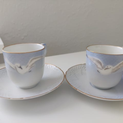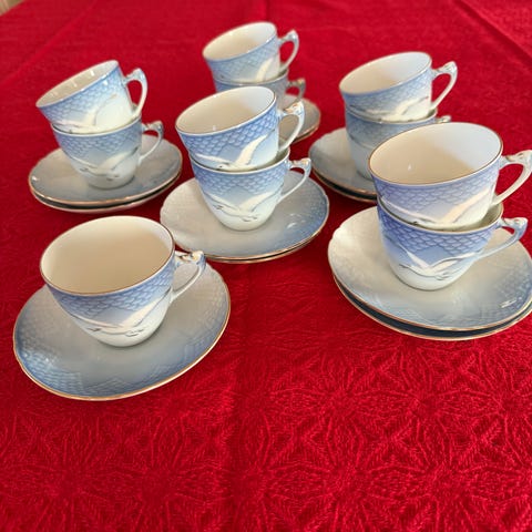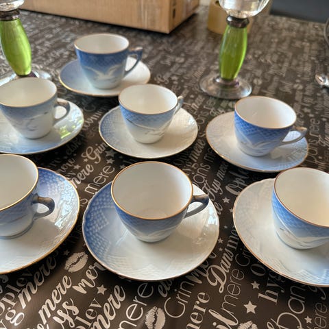 Porcelæn, Mokka kopper , B&G mågestellet med guldkant, 12 smukke mokkakopper fra B&G , mågestellet med guldkant . Kop og underkop nr 108 og 463 . 1000kr for alle sammen