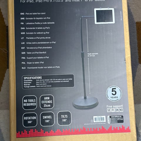 Andet mærke, Just mobile, God, Just mobile tablet holder eller iPad stand. I aluminium. Sider godt stabilt på holderen/standen. Der er gummi hvor tabletten/iPad’en er i berøring med holderen så tabletten ikke bliver ridser. Kommer fra røg frit hjem. Kan evt. leveres personligt i kbh. Og Roskilde området efter aftale.