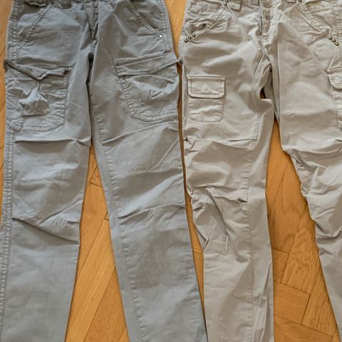 Chinos fra Mos Mosh i bomuld og elastan. Der er to lommer fortil og velour kant øverst. De måler 84 cm i livet. Fra livet og til fod måler de 100 cm og indvendig mål er 73 cm.