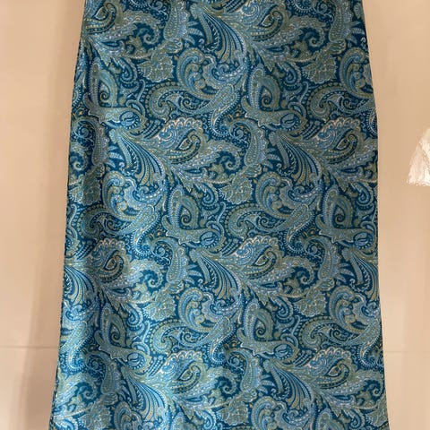 Bredde i taljekant ca 37,5 - 38 cm og kan stretches ca 4 cm