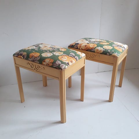 Anden arkitekt, Sovevætelse skammel, Egetræ, 2 stk skammel bænk soveværelse møbel fine velholdt grøn fløjl fra ca 1970 er fine h 46 b 31 lang 50 samlet sendes ikke
