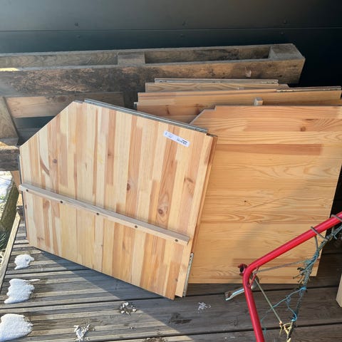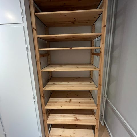 Anden reol, Ikea, b: 56 d: 56, 7 hjørnehylder “Ivar” af fyrretræ og en hjørnestolpe.