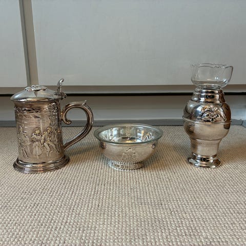 Vintage genstande til servering af sølvplet. Læs beskrivelsen