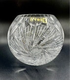 2 - vintage smuk massiv krystalskål med hånskårede motiver. H 5,5 cm, D 11,5 cm.