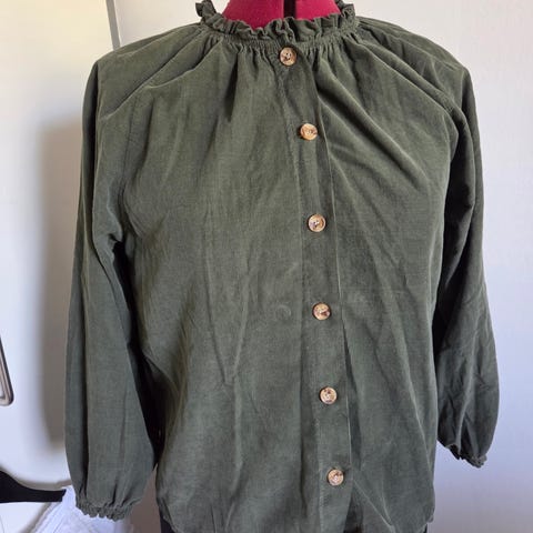 skjorten lukkes foran med 5 sølvfarvet knapper