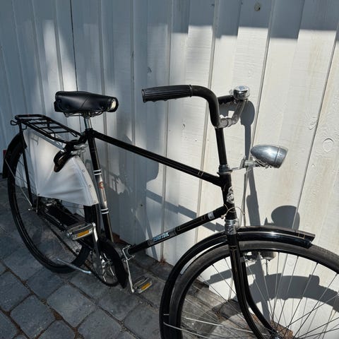 Men den har fået ny dæk for og bag, lås, styrbånd, styr, støtteben og sadel