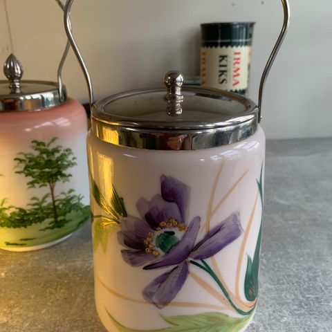 Gammel kiksespand, Glas, Smukt dekoreret