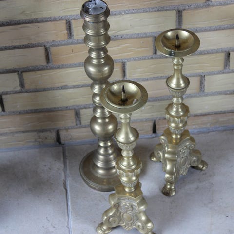 Messingstager, Danish handmade, To flotte messingstager Danish Handmade, fra røgfri hjem. Pris pr stage 79 kr pris for begge stager 140 kr. Kan sendes, modtager betaler porto.