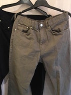 Jeans, H&M, str. 31, Sort + olive, Denim, Næsten som ny, 31/30