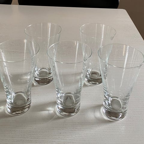 Glas, Ølglas, Holmegaard, Clausholm, 6 fantastiske fine ølglas fra Holmegaard. Det er dem som hedder Clausholm og de er designet af Per Lütken i 1957.. De blev taget ud af salg i 1982, så de fås ikke mere.. De har stregslibninger med bomber.. Og ølglassene måler 13 cm.i højden og de er alle 6 i perfekt stand. De sælges samlet..