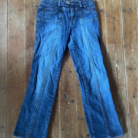 Rigtig flotte bukser til pige, størrelsen hedder i bukserne str. 16, der svarer til str. 170. Kun lidt brugt, ingen brugsspor, ingen slidtage, ingen pletter. Bukserne har lommer. Kun vasket i parfumefrit vaskepulver. Røg- og dyrefrit hjem. Sendes gerne.