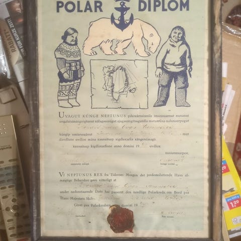 Andre samleobjekter, SAS Ækvatorcertifikatl, Certifikat med SAS DC6 i 1953 i træramme, Mål 29x24 cm