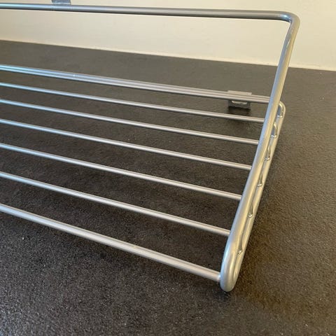 Anden arkitekt, Ulf Scherlin design, Greith Ab sweden, Ren luksus og skal sælges billigt og hurtigt giv et bud hattehylde skohylde knagerække egetræ og aluminium hylde svensk design bredde 118cm 2500kr pr stk