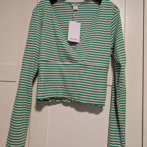 Langærmet bluse, Monki, str. XXS. Mørkeblå, Næsten som ny, Super smuk rib bluse med flotteste udskæring. Som ny fra røgfrit hjem.