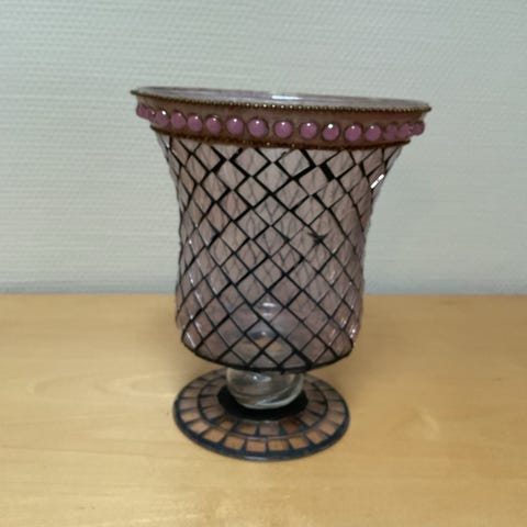 Vægstykke/ophæng, Haandarbejdets fremme/Edith Hansen/Mosaikvindue, Fint lille ophæng, vægstykke designet af Edith Hansen for Haandarbejdets Fremme indrammet i glas og ramme.