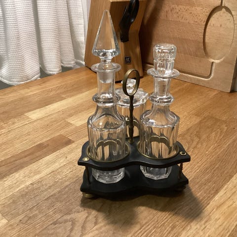 Andet, Olie og eddike sæt, Rigtig fint olie og eddike opsats i flot stand med patina.