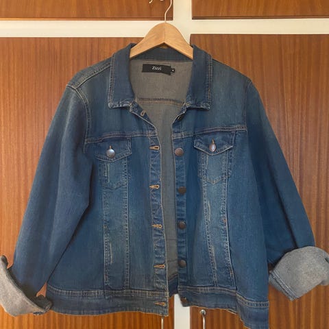 Cowboyjakke, str. 46, Zizzy, lyseblå, 82% bomuld 16% polyester 2% elashand, Ubrugt, En klassisk cowboy jakke. den er bleget, så den lyseblå falder forskelligt ud.