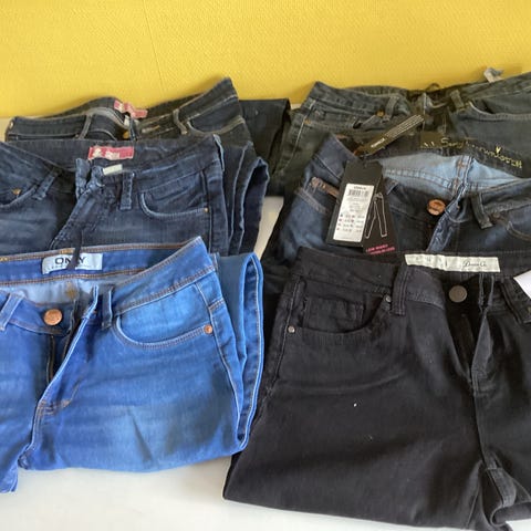 Ubrugte Jeans, damebukser str 42. znk for-vaskede denim. 3 tøjannoncer for 2
